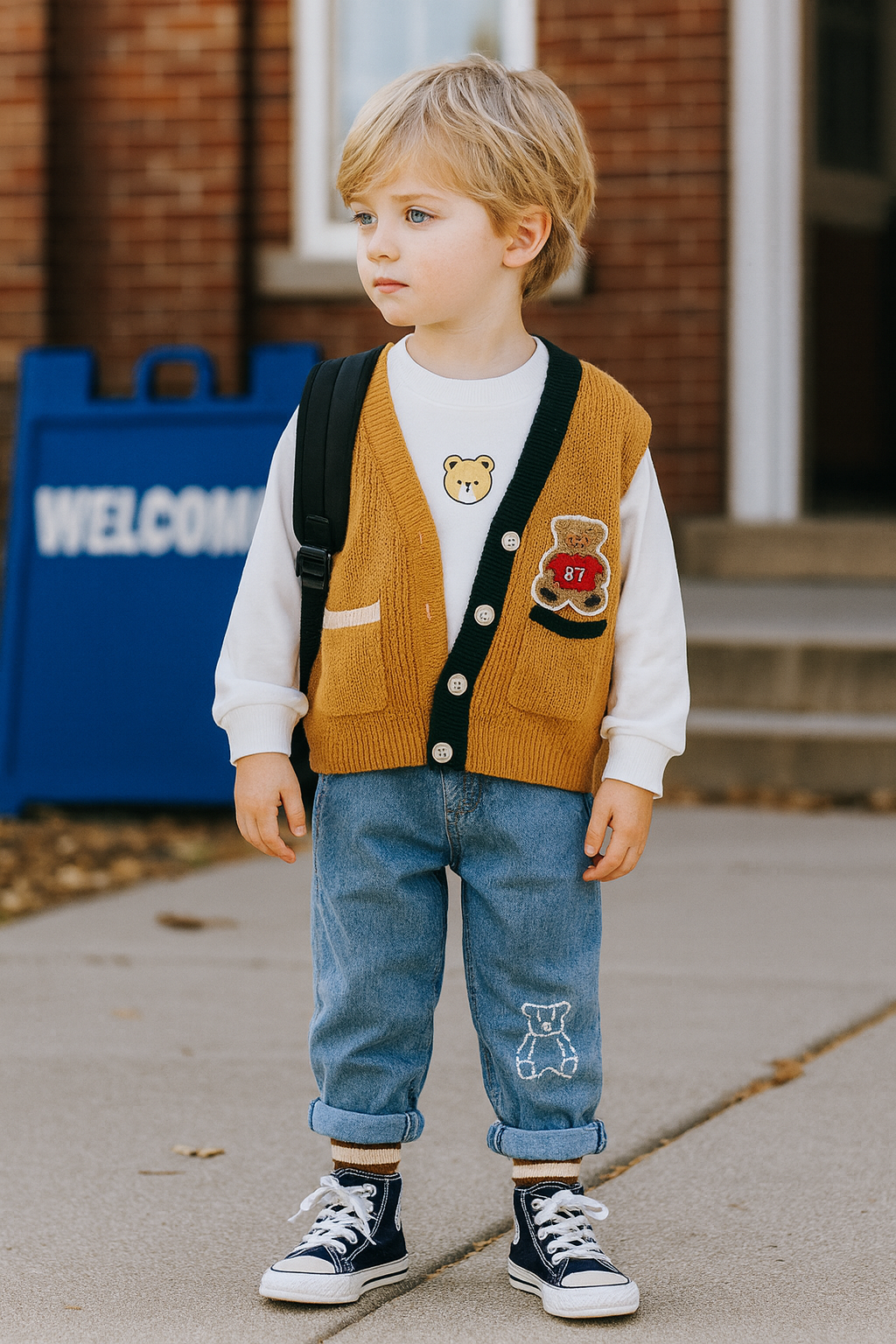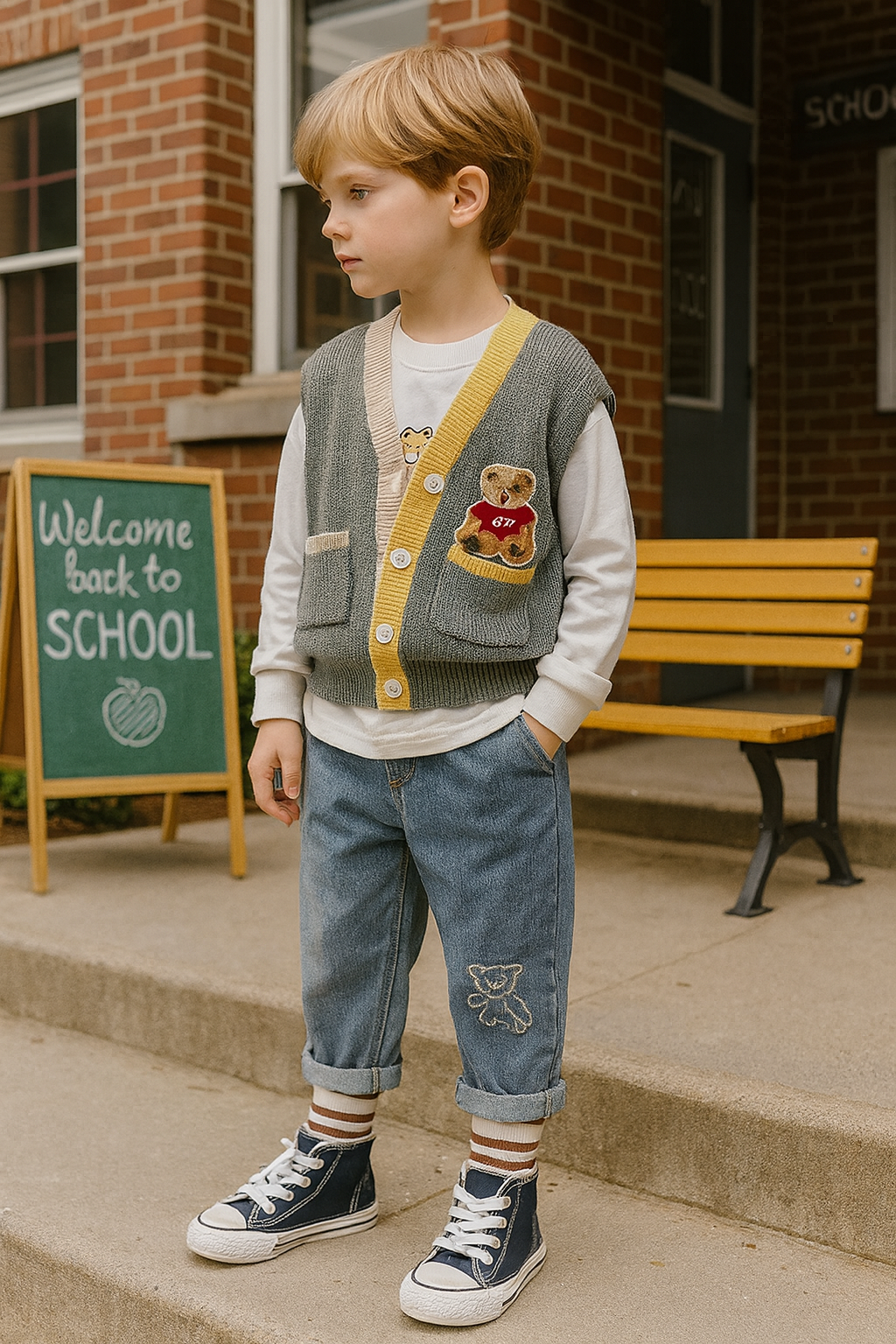 ENSEMBLE CARTOON TROIS PIECES VESTE + PULL + PONTALON JEANS