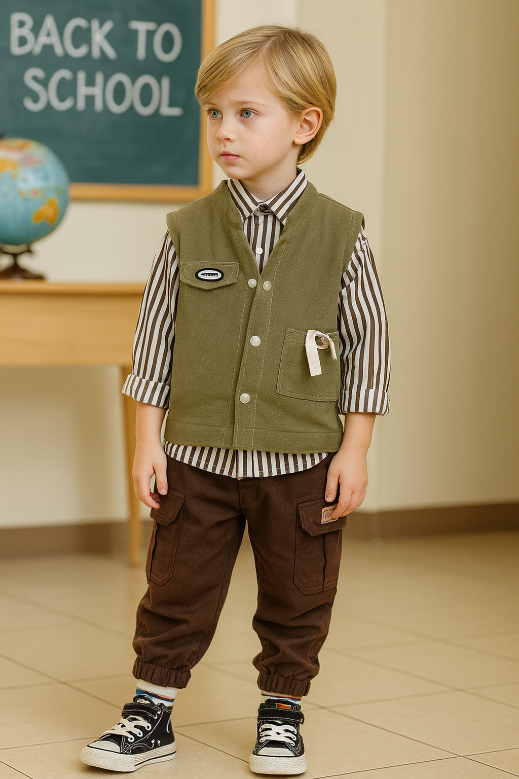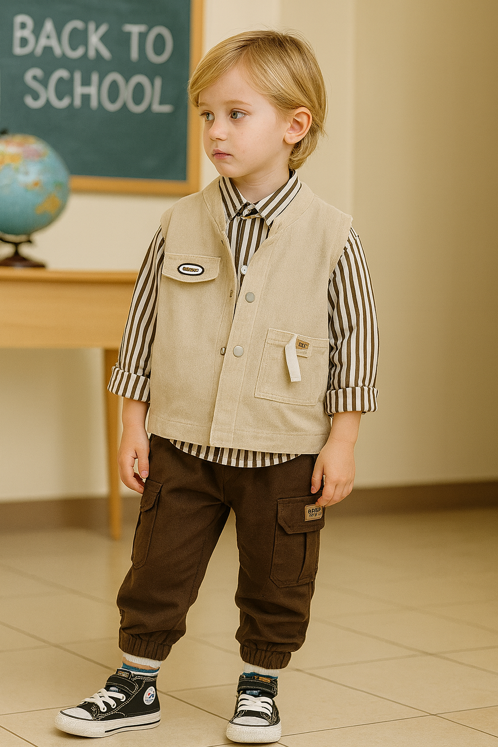 Ensemble 3 piéces veste pull coton pantalon jeans