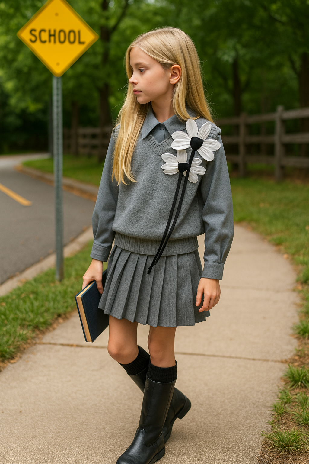 Ensemble filles trois pieces gilet + pull + pontalon jeans + accesoire