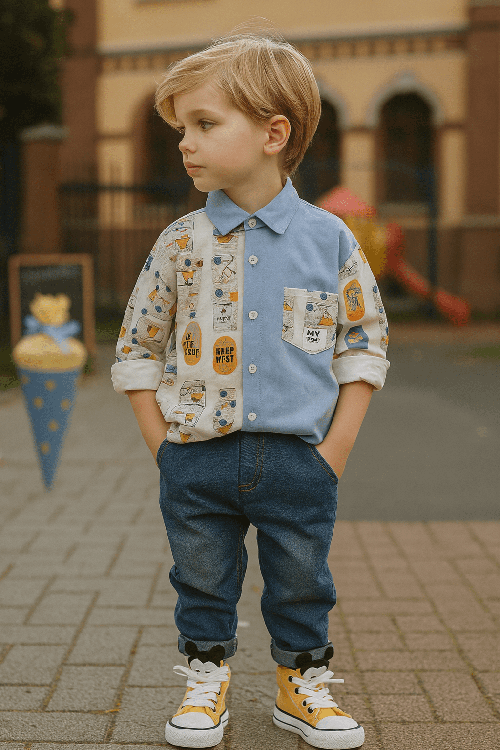 ENSEMBLE CARTOON TROIS PIECES VESTE + PULL + PONTALON JEANS