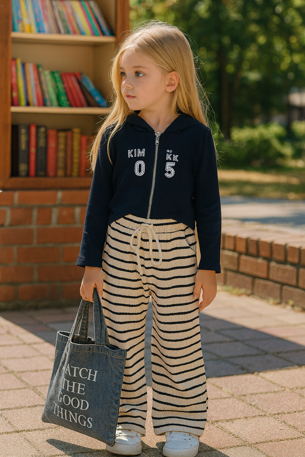 Ensemble deux piéces sweat-shirt à capuche – pantalon rayé