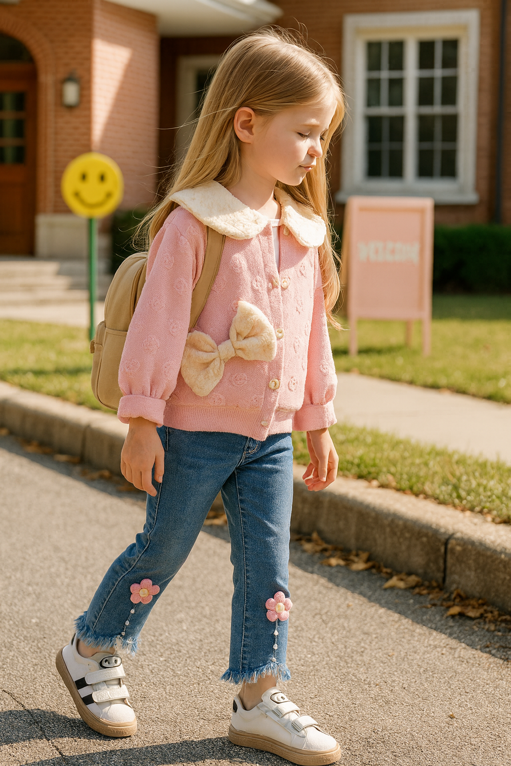 Ensemble filles trois pieces gilet + pull + pontalon jeans + accesoire