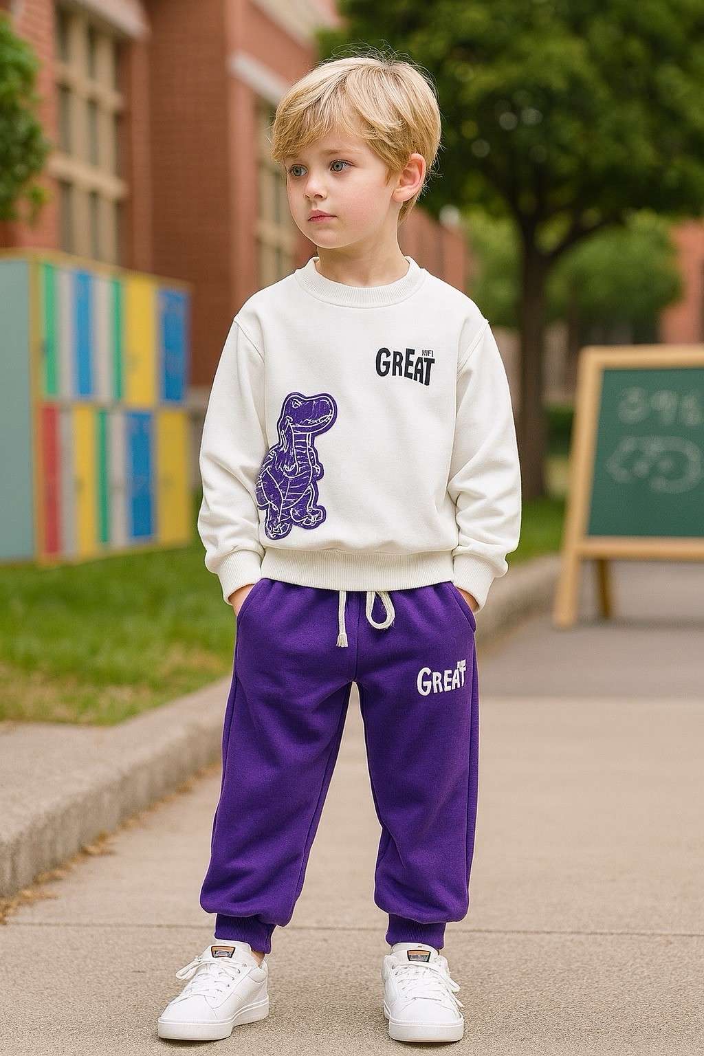 ensemble jogging deux pieces pull coton – bas jogging coton motif dinausaure