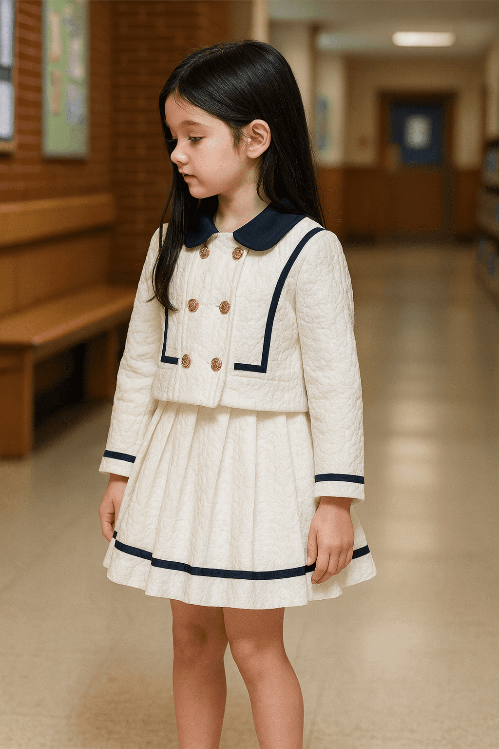 Ensemble 3 piéces jupe – chemise – gilet